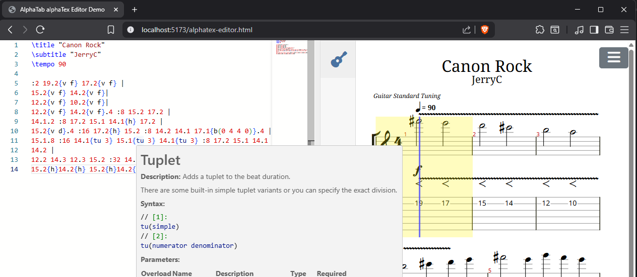 We also use this module in our development playground. You can check out and test things by cloning alphaTab and opening it in VS Code (it will compile and start the playground).
